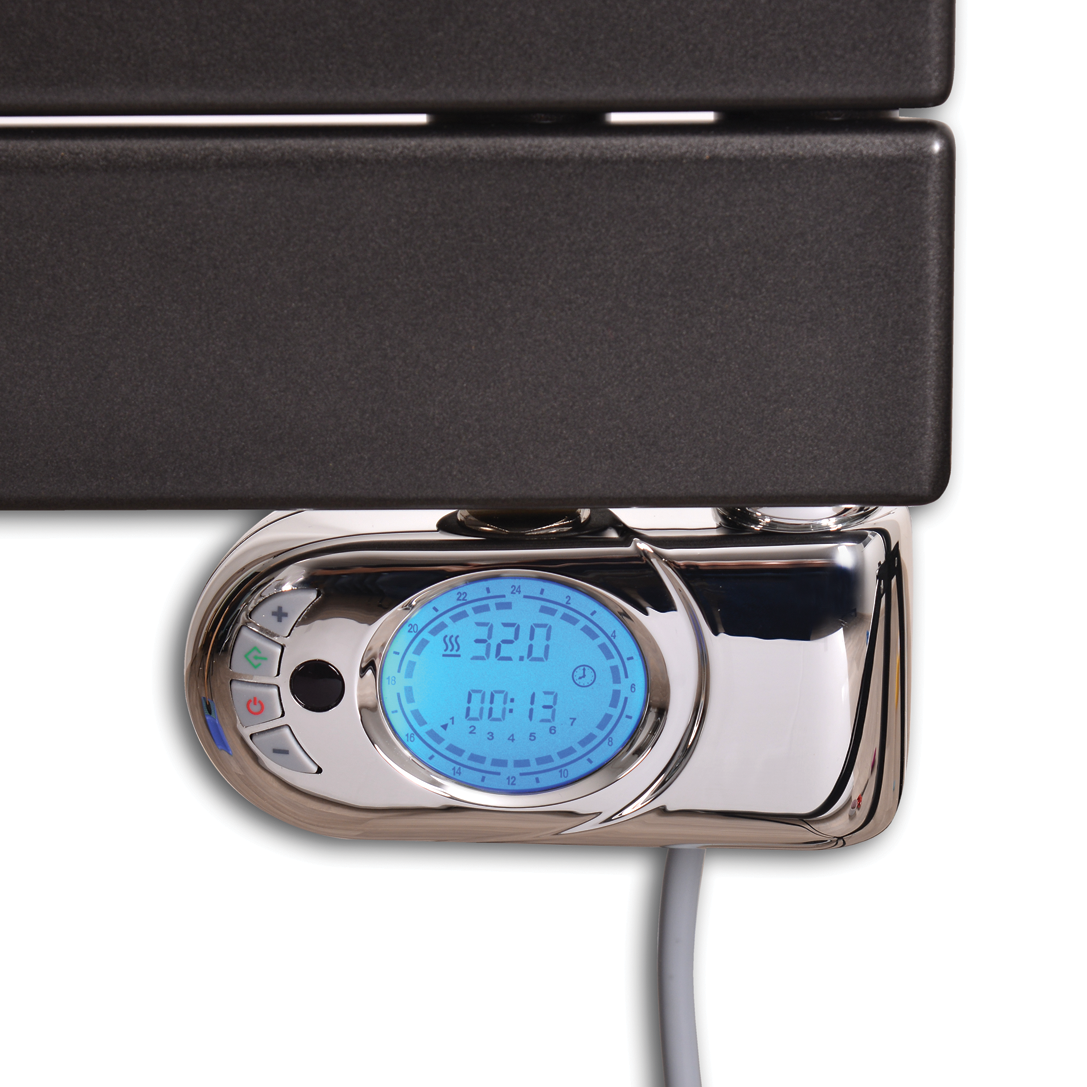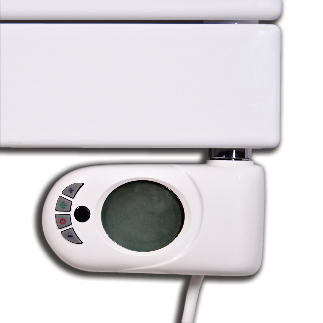 je zásuvkový termostat s LCD displayem, LED signalizací, časovým spínačem a jednoduchým ovládáním pomocí tří tlačítek. Má krytí IP20, instalovat ho můžeme v zóně 3. Samotný radiátor může být instalován ve všech zónách.